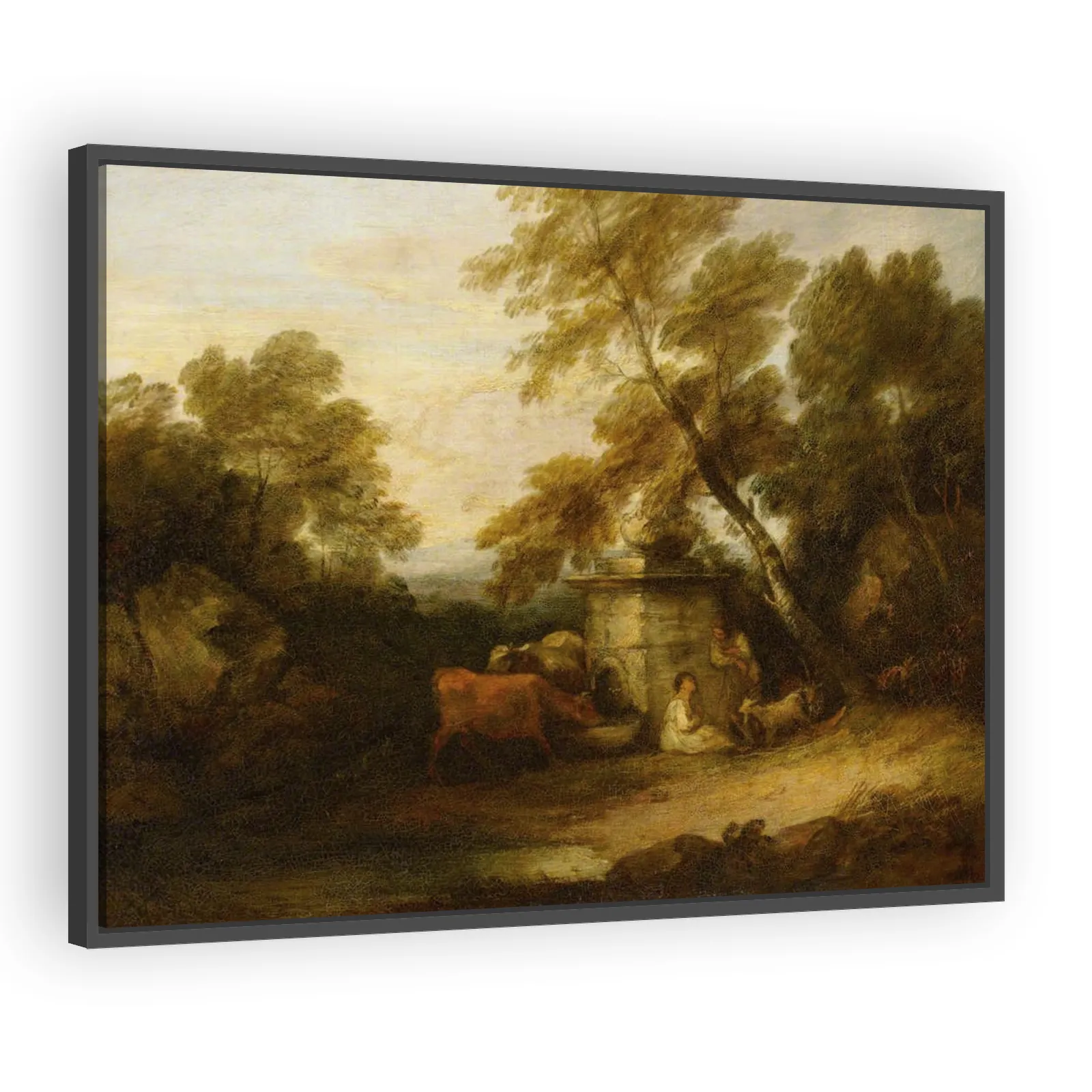 Thomas Gainsborough’s Cattle at a Fountain (1800) is a luminous English landscape composition. Rendered in oil on canvas, its pastoral calm, fluid brushwork, and sensitive handling of light make it a...