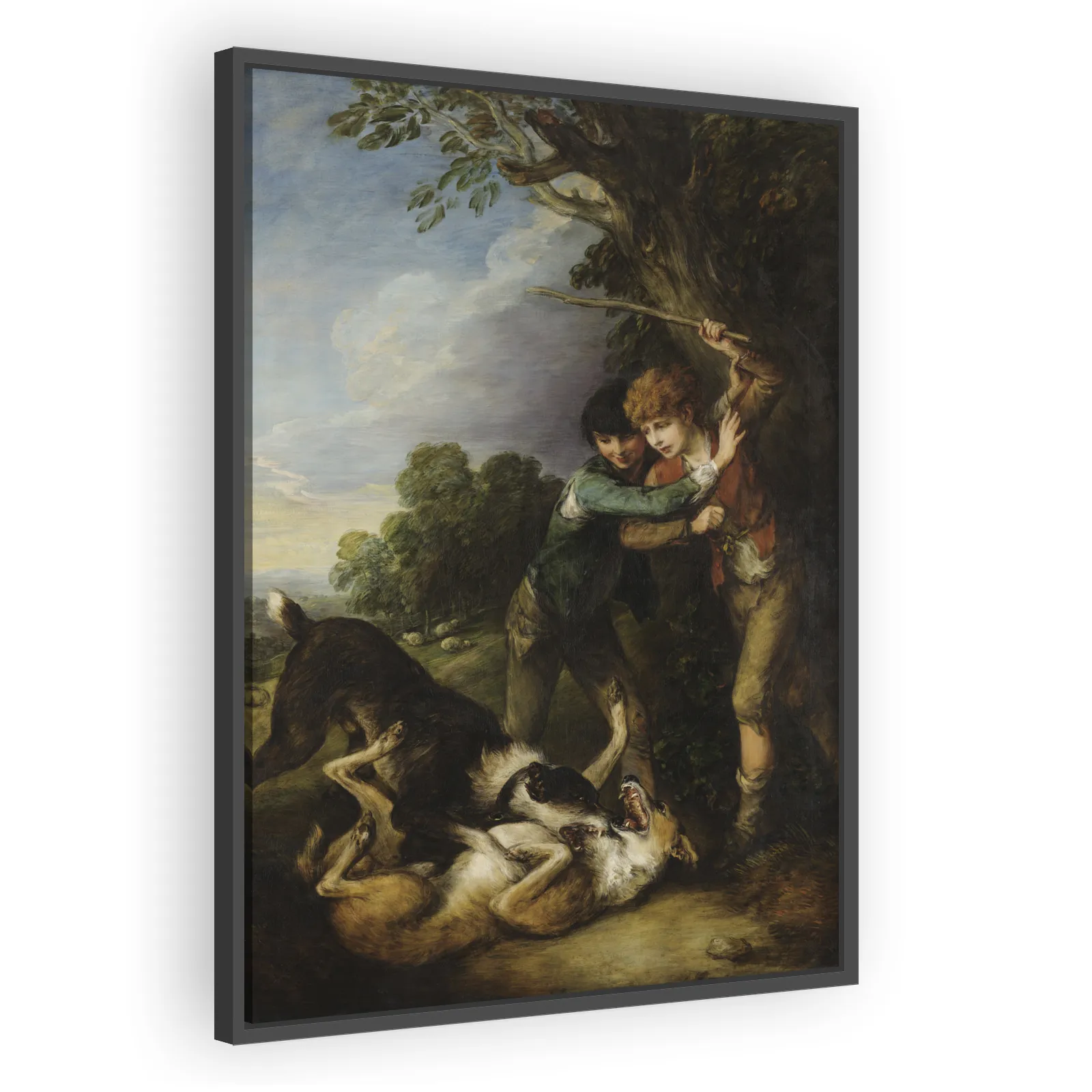 A lively 1783 scene by Thomas Gainsborough capturing rural youth and animal energy. The work combines loose, expressive brushwork with atmospheric landscape to celebrate English pastoral life—an appea...