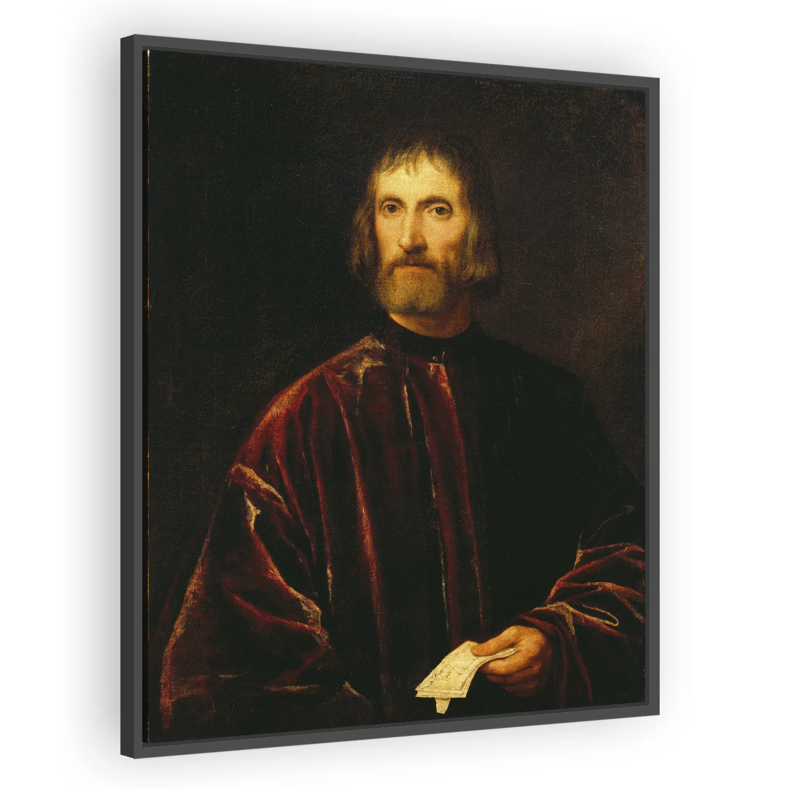 Titian’s 1532 portrait of Andrea de' Franceschi exemplifies the Venetian school's rich colorism and psychological presence. Warm pigments and confident brushwork render a commanding, dignified sitter...