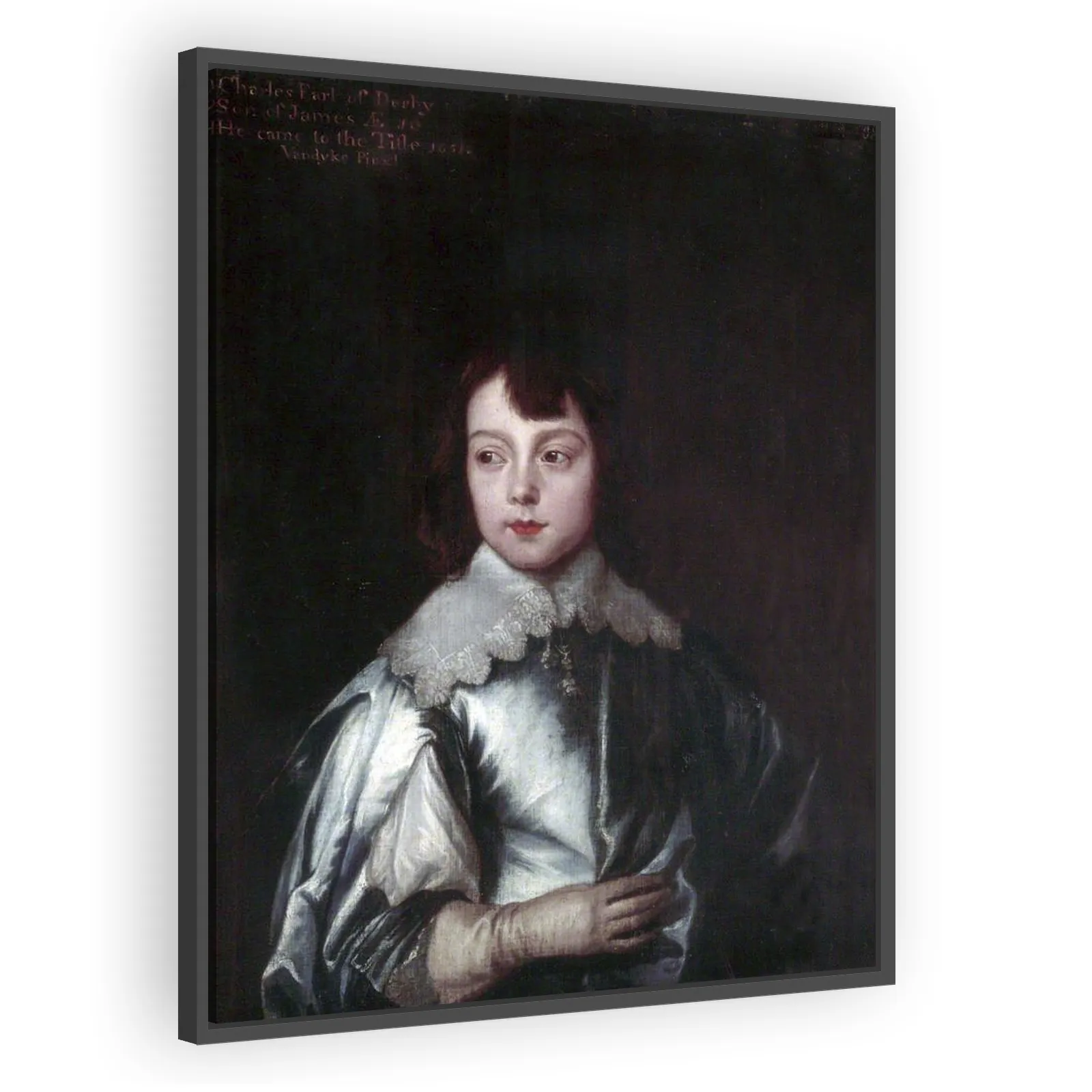 A commanding portrait by Sir Anthony van Dyck depicting Charles Stanley, 8th Earl of Derby. Van Dyck’s elegant Baroque manner captures aristocratic dignity, subtle psychological presence, and the refi...
