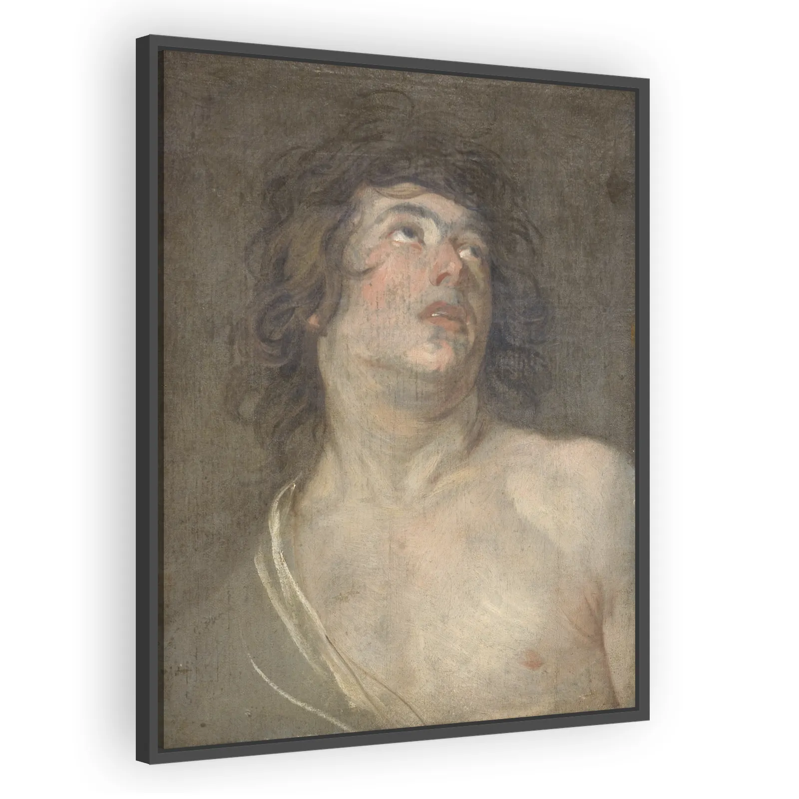 A powerful 1627 study by Anthony van Dyck capturing a young man’s upward gaze—a devotional, expressive head study linked to St Sebastian. Noted for luminous flesh tones, dynamic brushwork and emotiona...