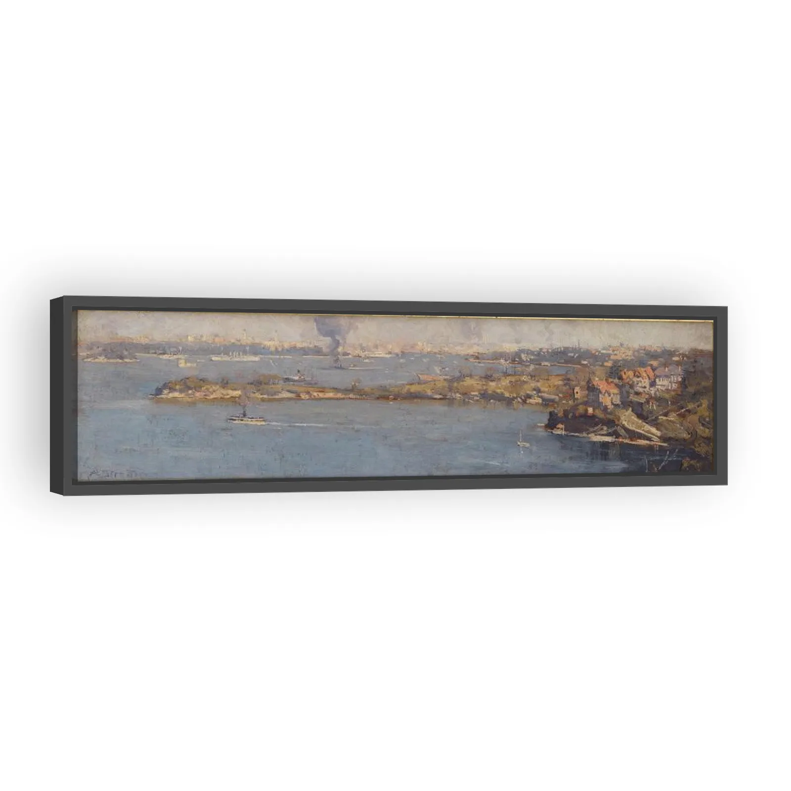 A luminous c.1907 oil by Arthur Streeton capturing Sydney Harbour from Cremorne. Exemplifying Australian Impressionism, the work emphasises light, atmosphere and sweeping coastal vistas — a compelling...