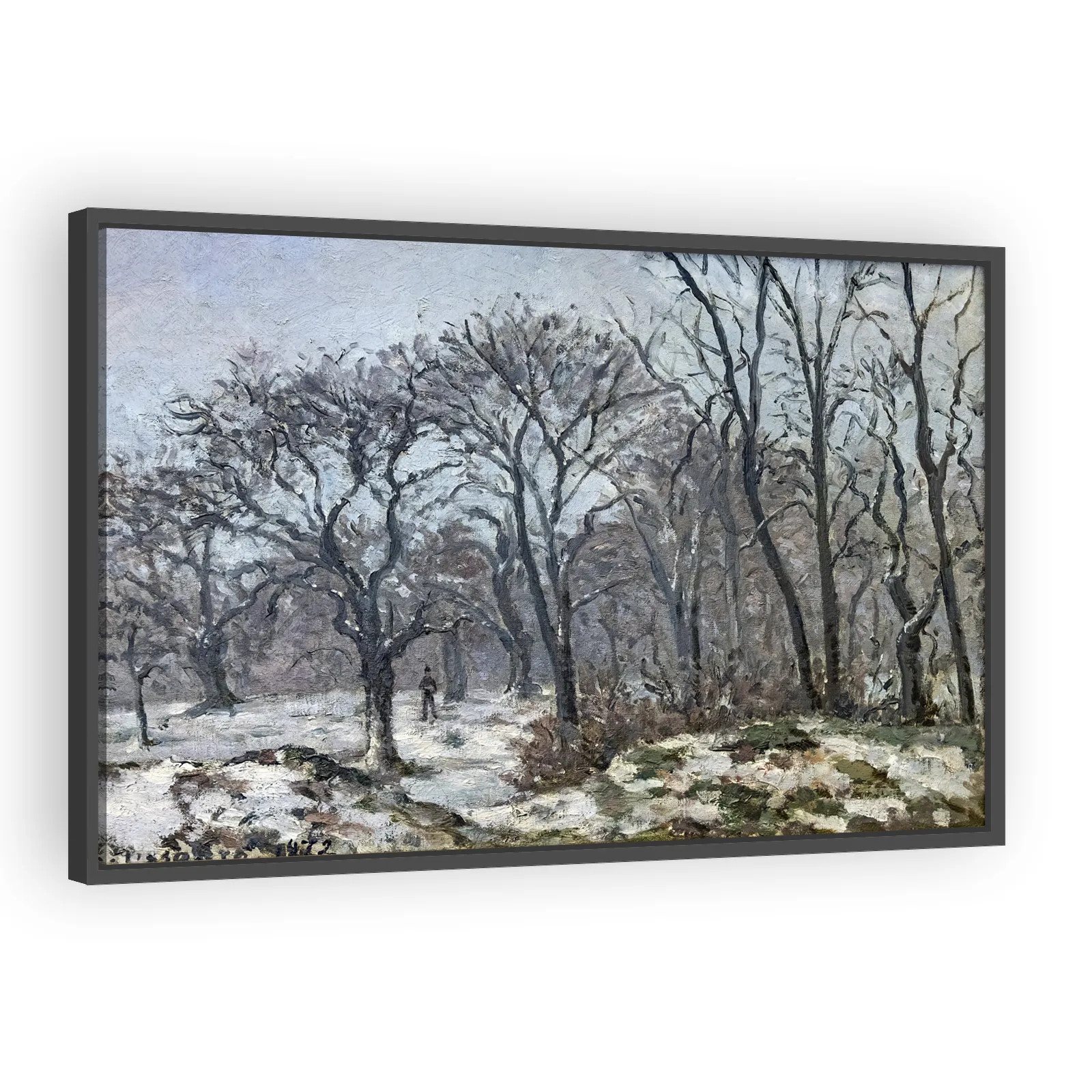 A luminous 1872 oil on canvas by Camille Pissarro capturing a quiet winter landscape in Louveciennes. Exemplifying early Impressionist attention to atmosphere, texture, and the shifting effects of lig...