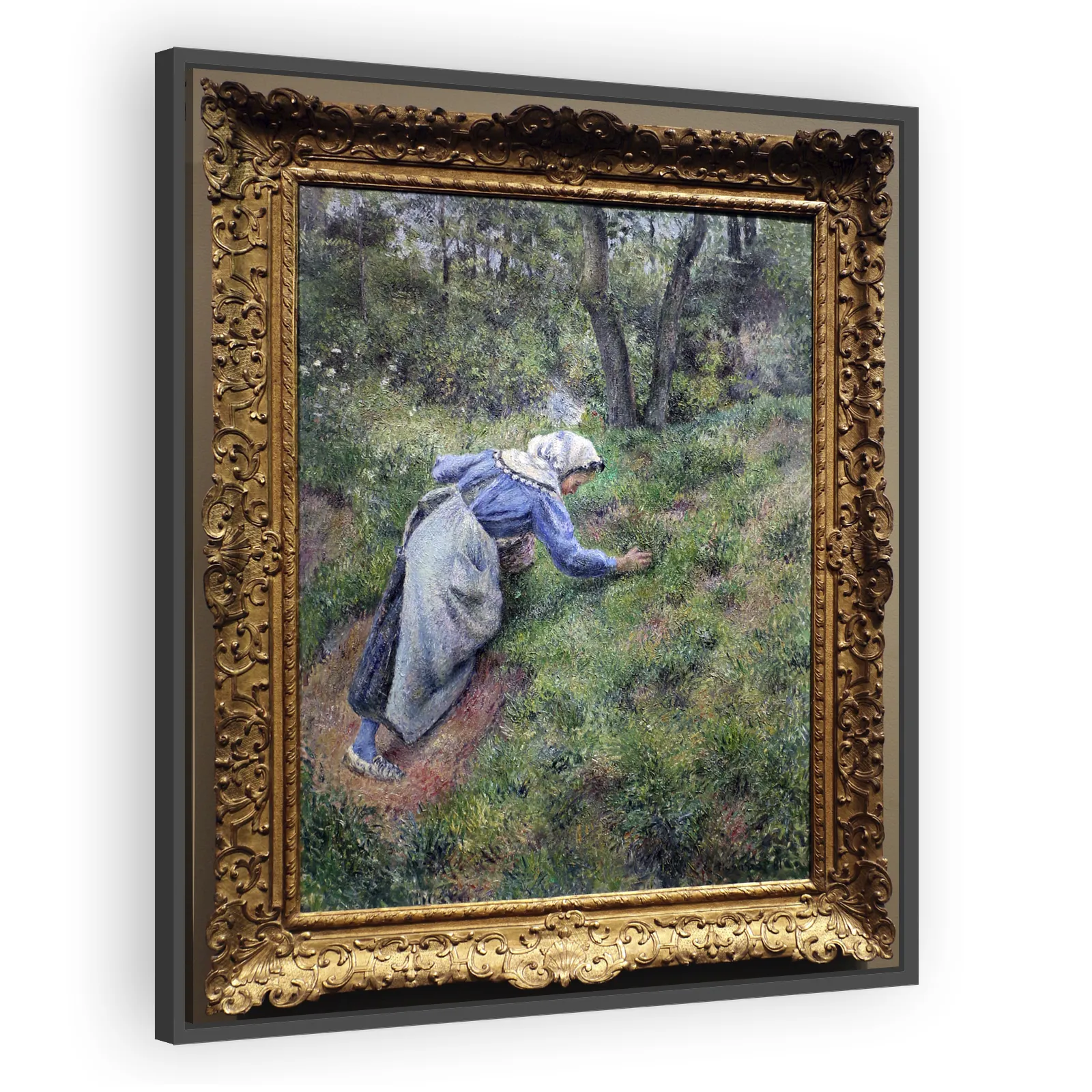 An intimate 1881 landscape by Camille Pissarro capturing rural life with Impressionist light and loose brushwork. This pastoral scene celebrates labor and nature—ideal for collectors drawn to plein-ai...