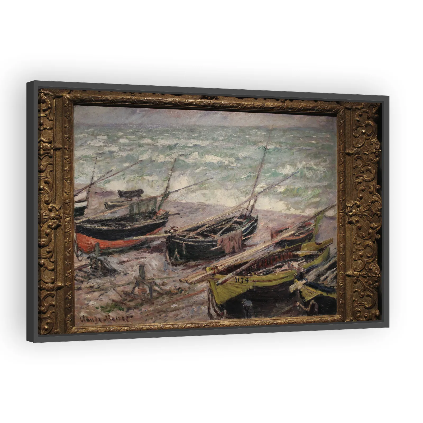 Claude Monet’s Fishing Boats in Étretat (1885) captures the luminous coastal air and shifting sea with brisk brushwork and subtle color harmonies. A quintessential Impressionist view, it appeals to co...