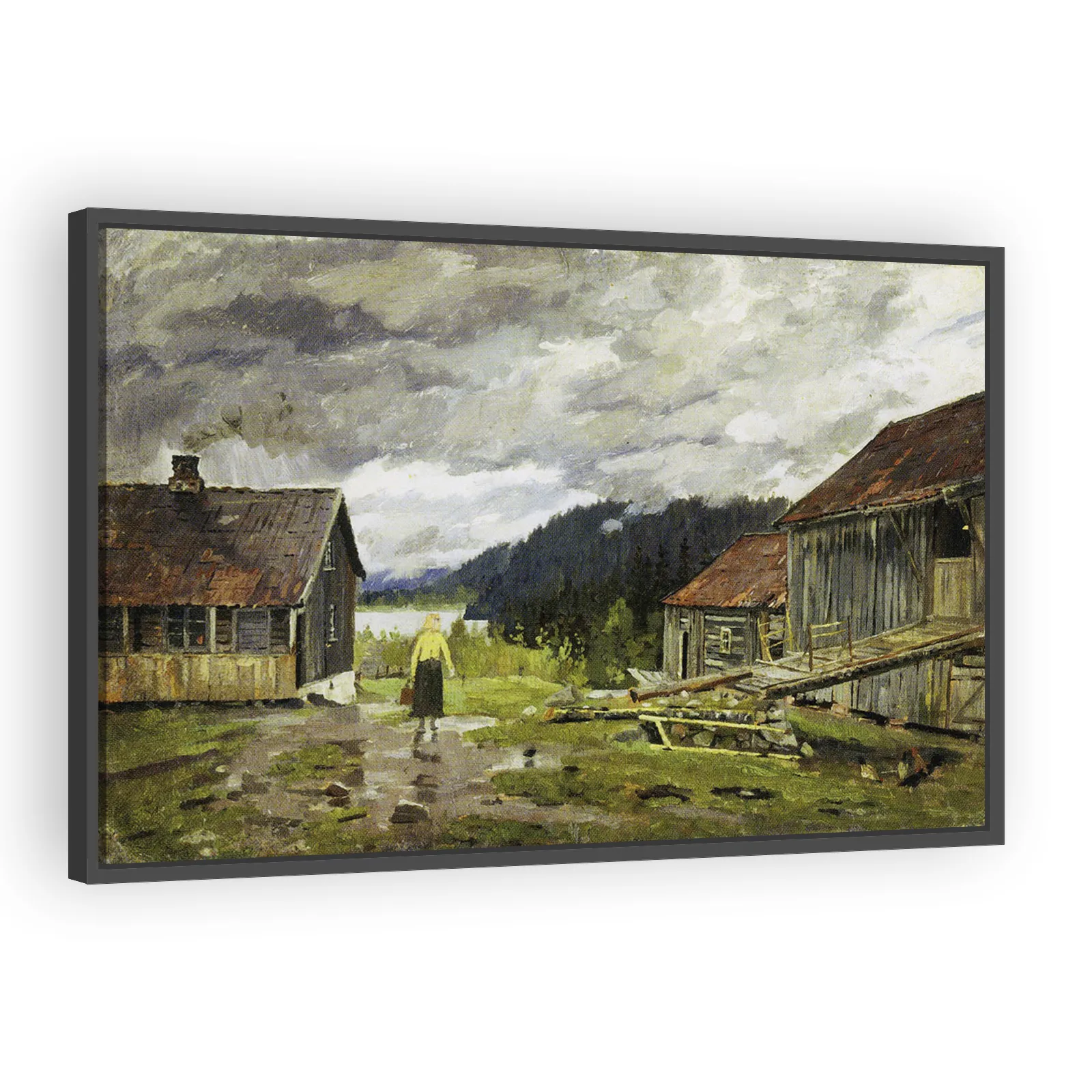 Early oil on cardboard by Edvard Munch (1881), portraying a Maridalen farmyard with sensitive observation of light, landscape and animals. A formative work that bridges naturalistic study and the emot...