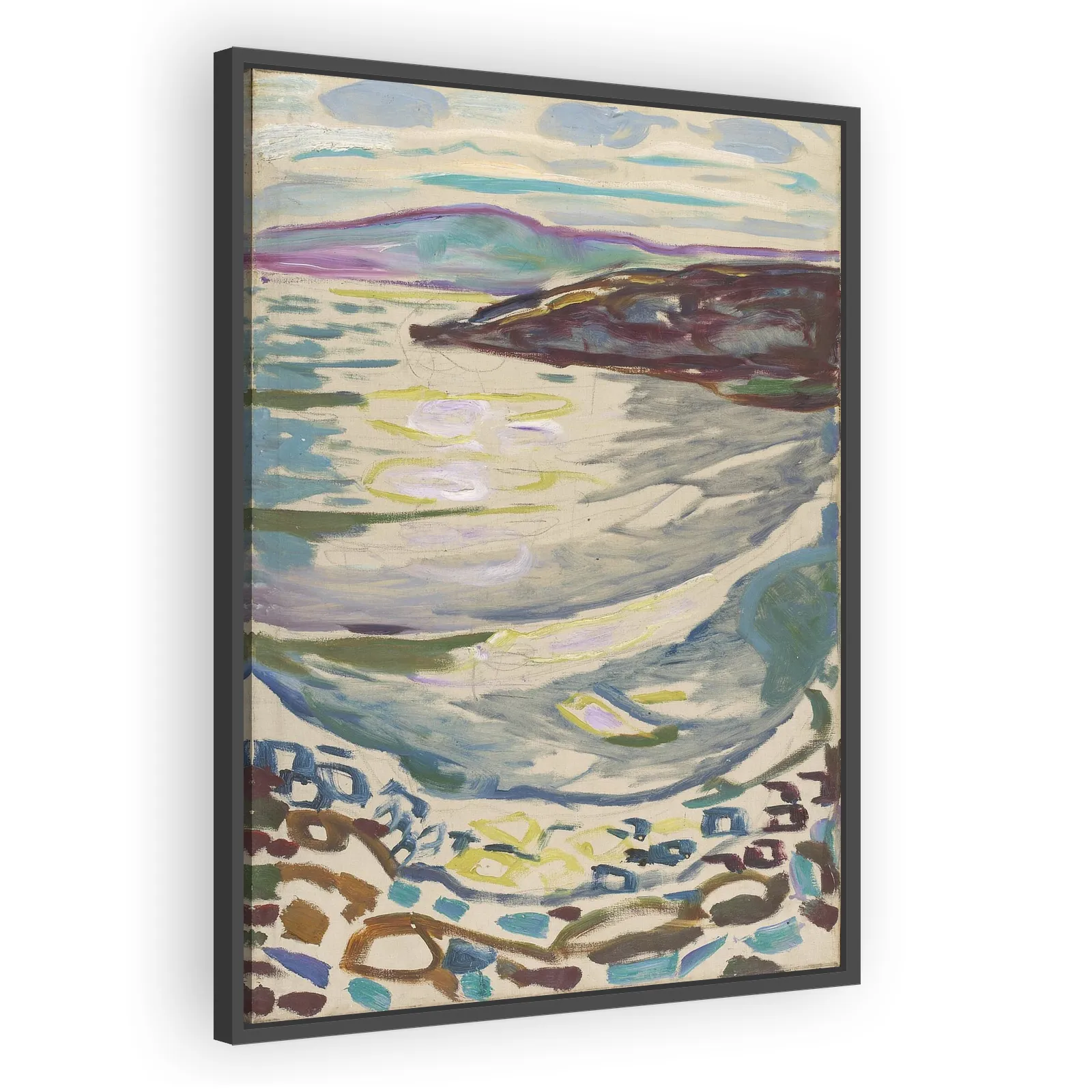 A contemplative 1918 landscape by Edvard Munch, capturing coastal Norway with expressive brushwork and muted palette. This evocative work reflects Munch’s late-career exploration of memory, atmosphere...