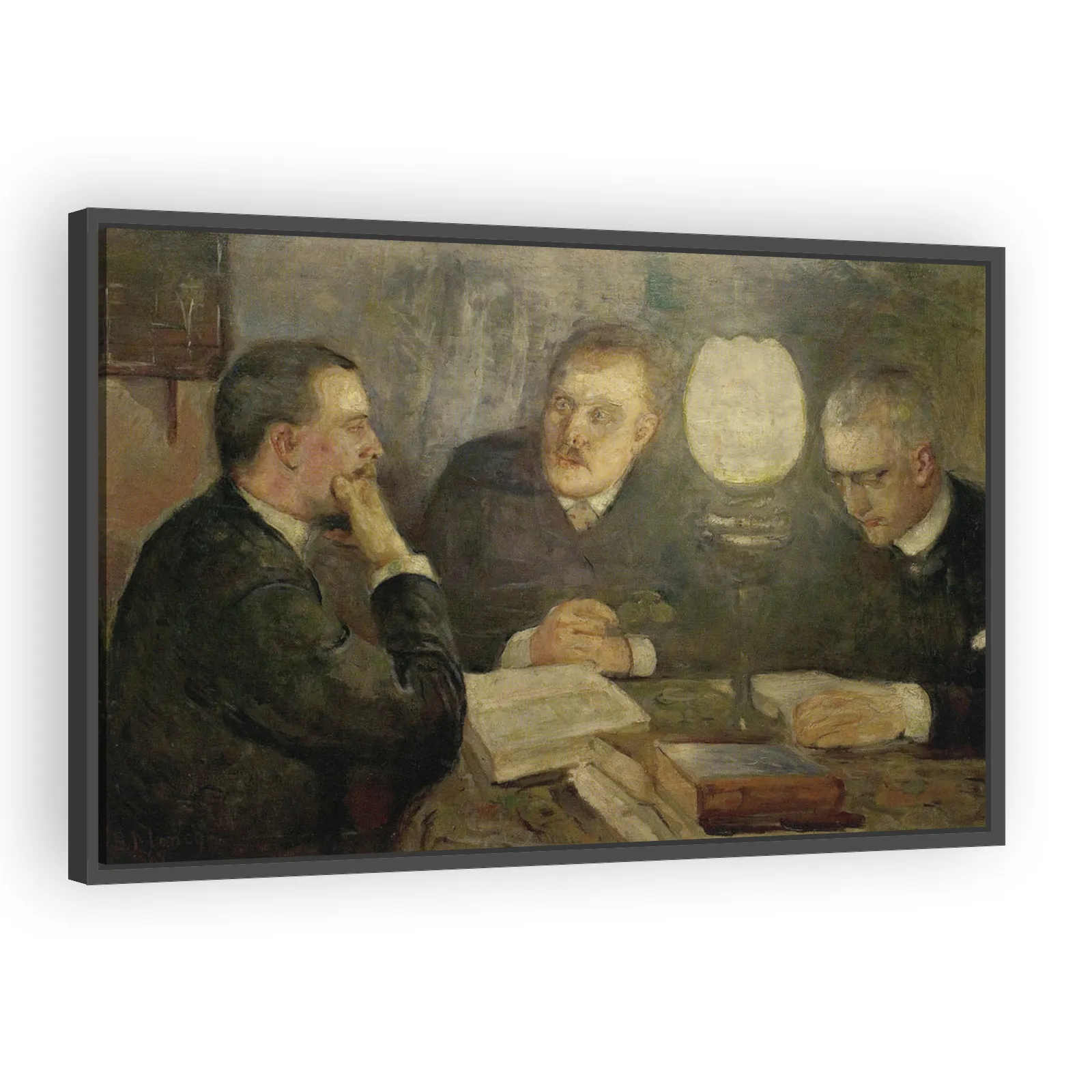 Edvard Munch's 1887 composition 'Law' is a psychologically charged work from his early period. Combining Symbolist mood, stark composition, and a focus on sitters Knud Knudsen, Bernt Anker Bødker Hamb...