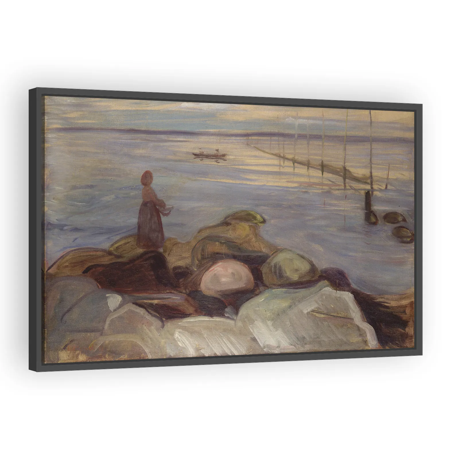 A haunting 1898 work by Edvard Munch capturing solitude and introspection on a Norwegian shore. Evocative color, simplified forms, and emotive atmosphere make it a powerful example of Munch’s symbolis...