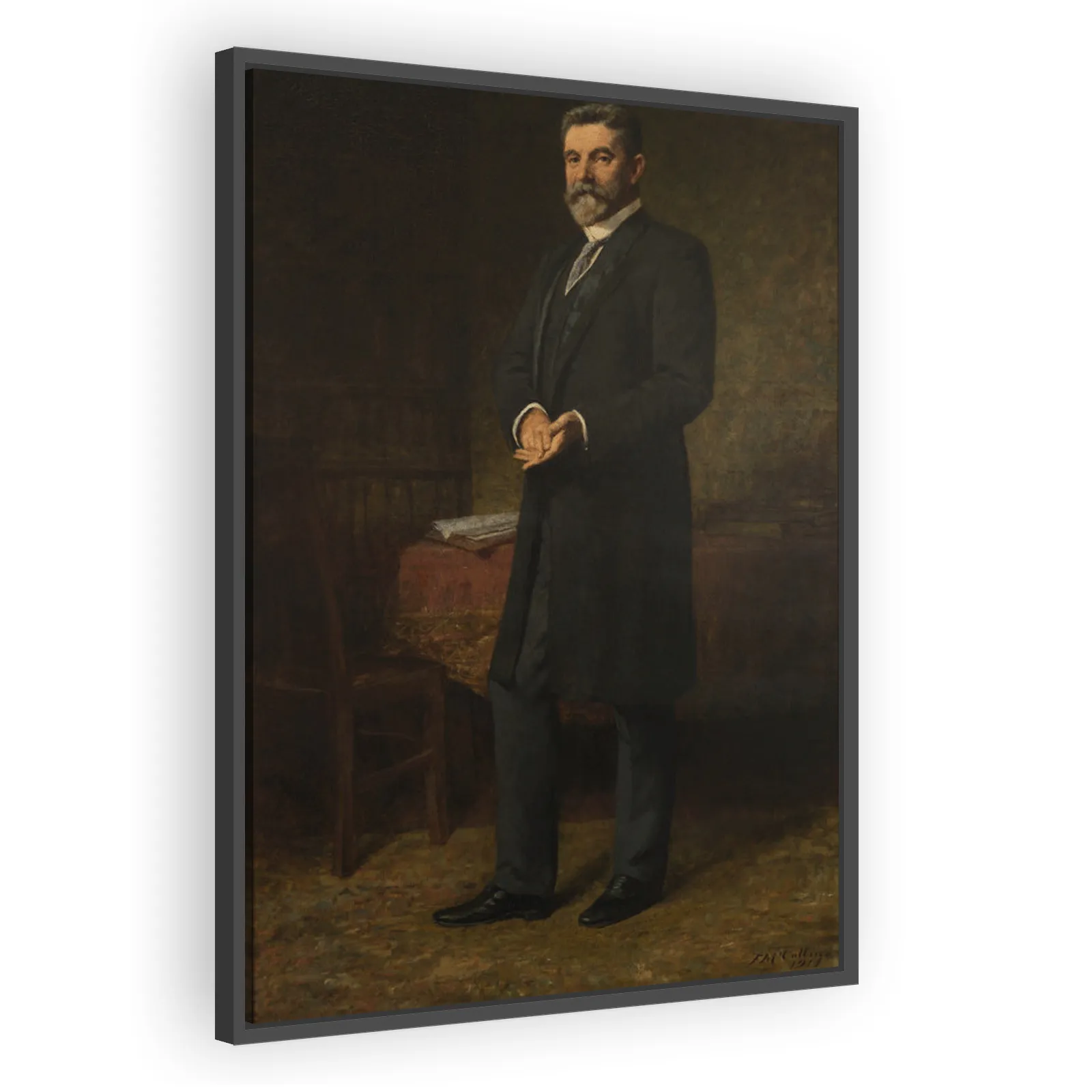 A 1914 portrait by Frederick McCubbin depicting Alfred Deakin, a key architect of Australian federation. McCubbin’s measured realism and subtle palette convey Deakin’s intellect and statesmanship—an e...