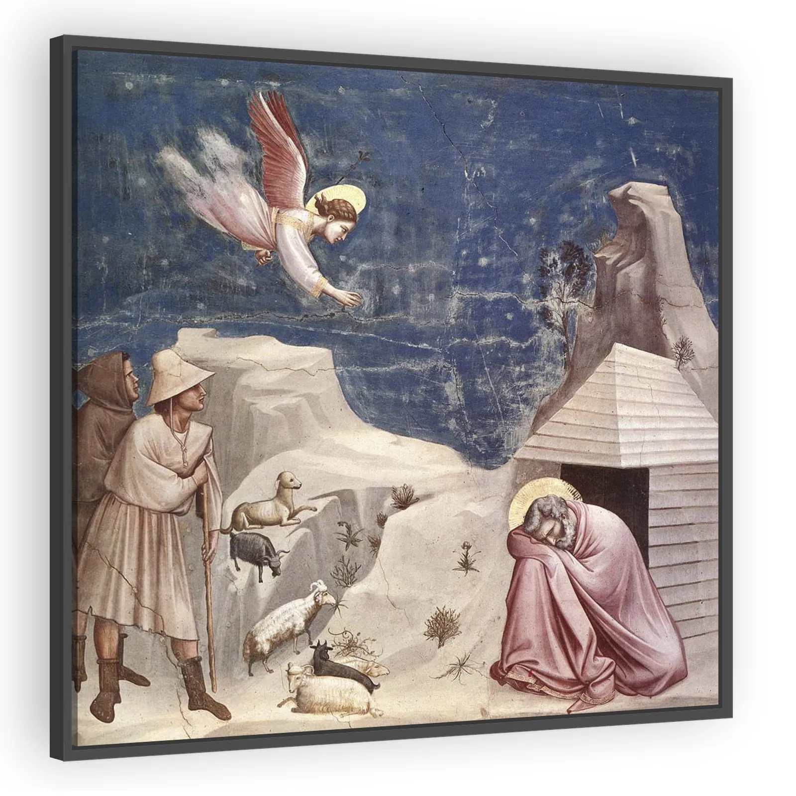 Giotto’s Joachim’s Dream (c.1300) is a pivotal scene from the Scrovegni Chapel fresco cycle in Padua. Rendered with early Renaissance naturalism and emotional clarity, it depicts the angelic annunciat...