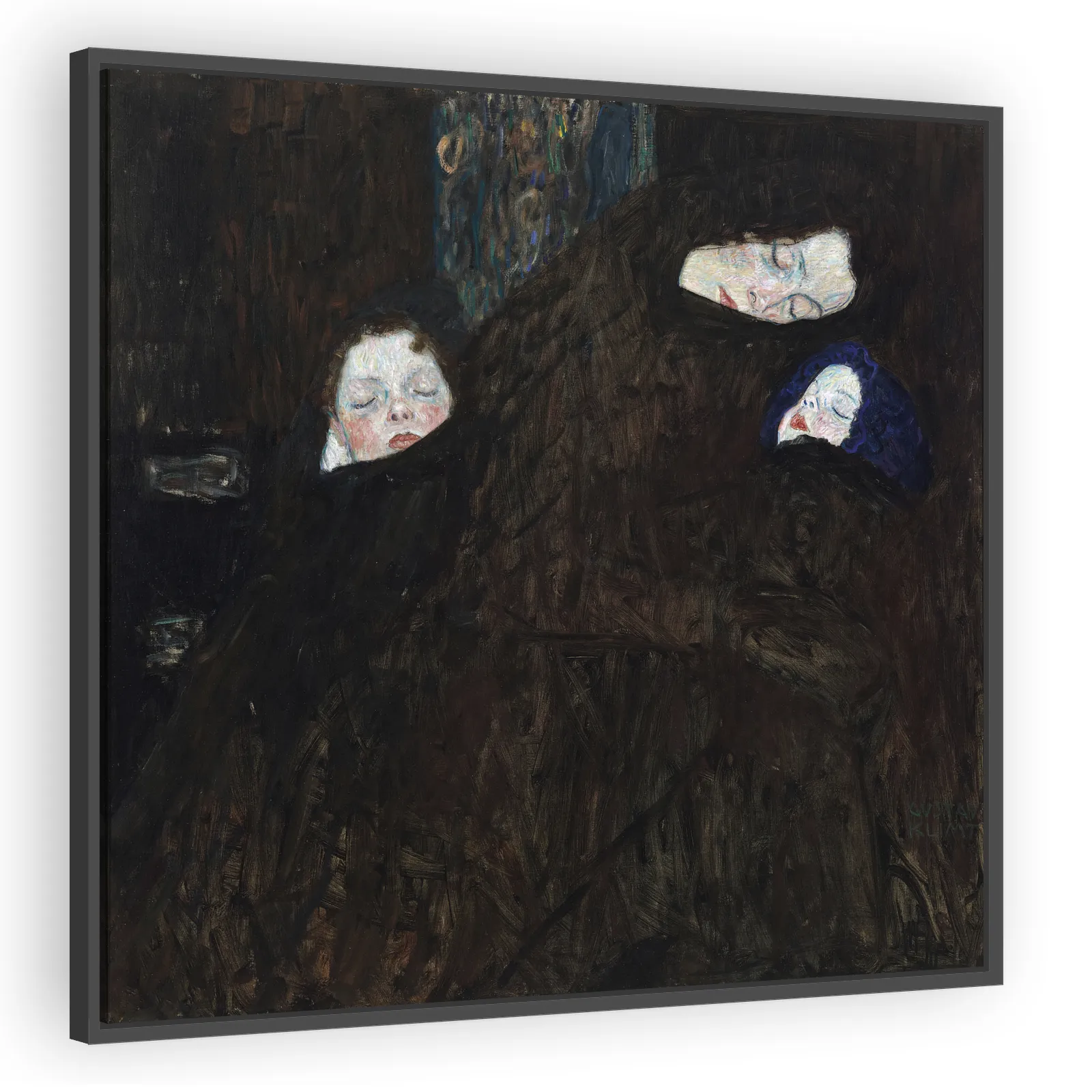 Gustav Klimt’s 1909 Mutter mit zwei Kindern (Familie) is a tender, decorative portrayal of motherhood that fuses Symbolist intimacy with Klimt’s signature ornamental surface. A compelling choice for c...