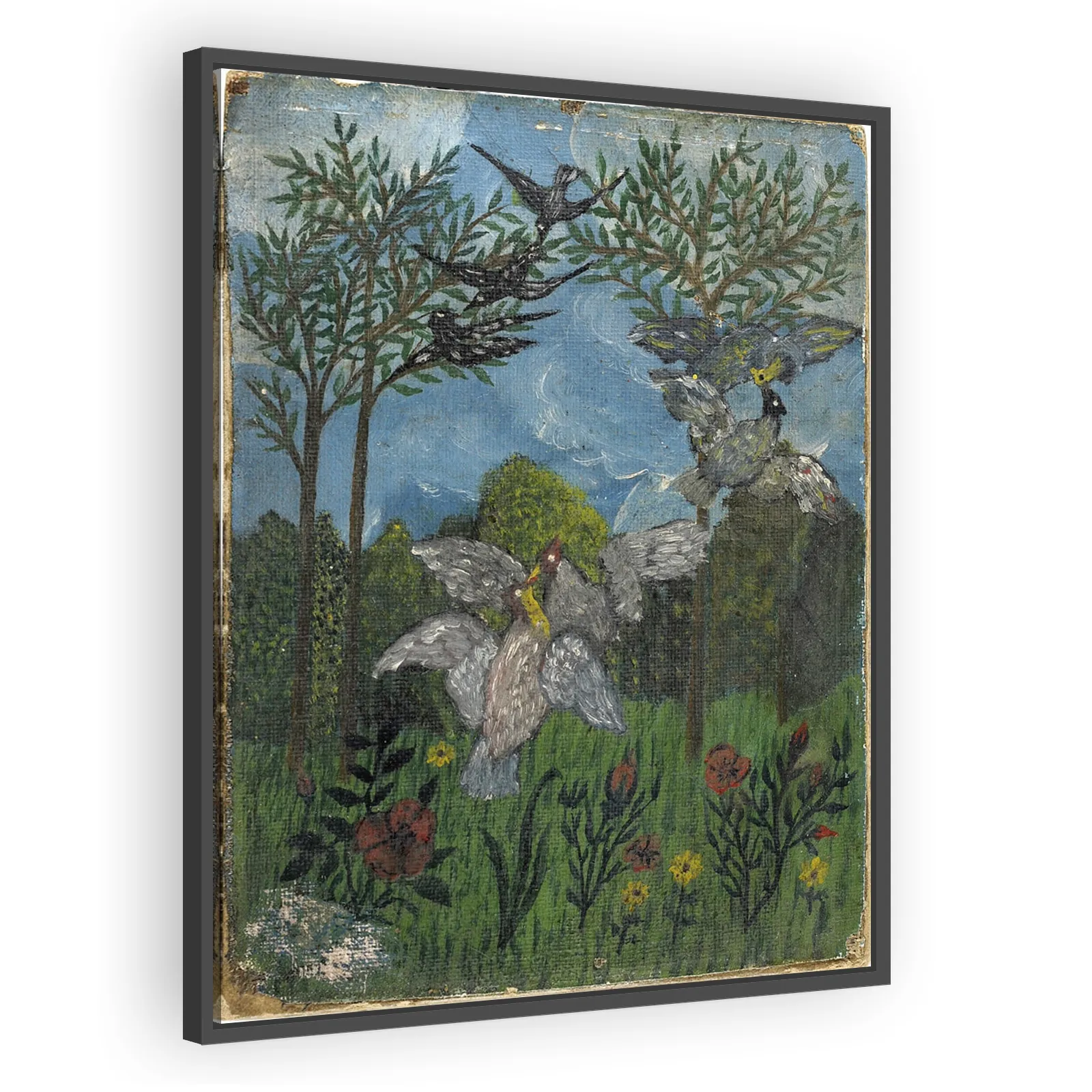 A delicate small-format oil by Henri Rousseau (16 × 12 cm), L'amour des oiseaux exemplifies his naïve-lyrical style and dreamlike domestic scenes. Exhibited in Berlin 1913, this intimate work appeals...