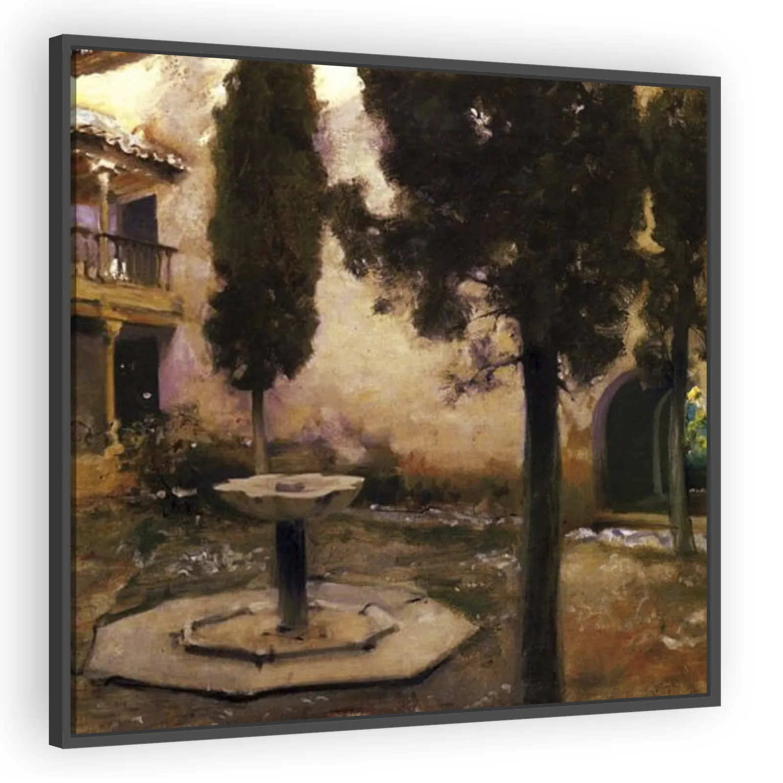 John Singer Sargent's 1879 study 'Alhambra, Patio de la Grille' captures the luminous geometry and Moorish ornament of Granada. A refined example of Sargent’s early travel work, prized for atmosphere,...
