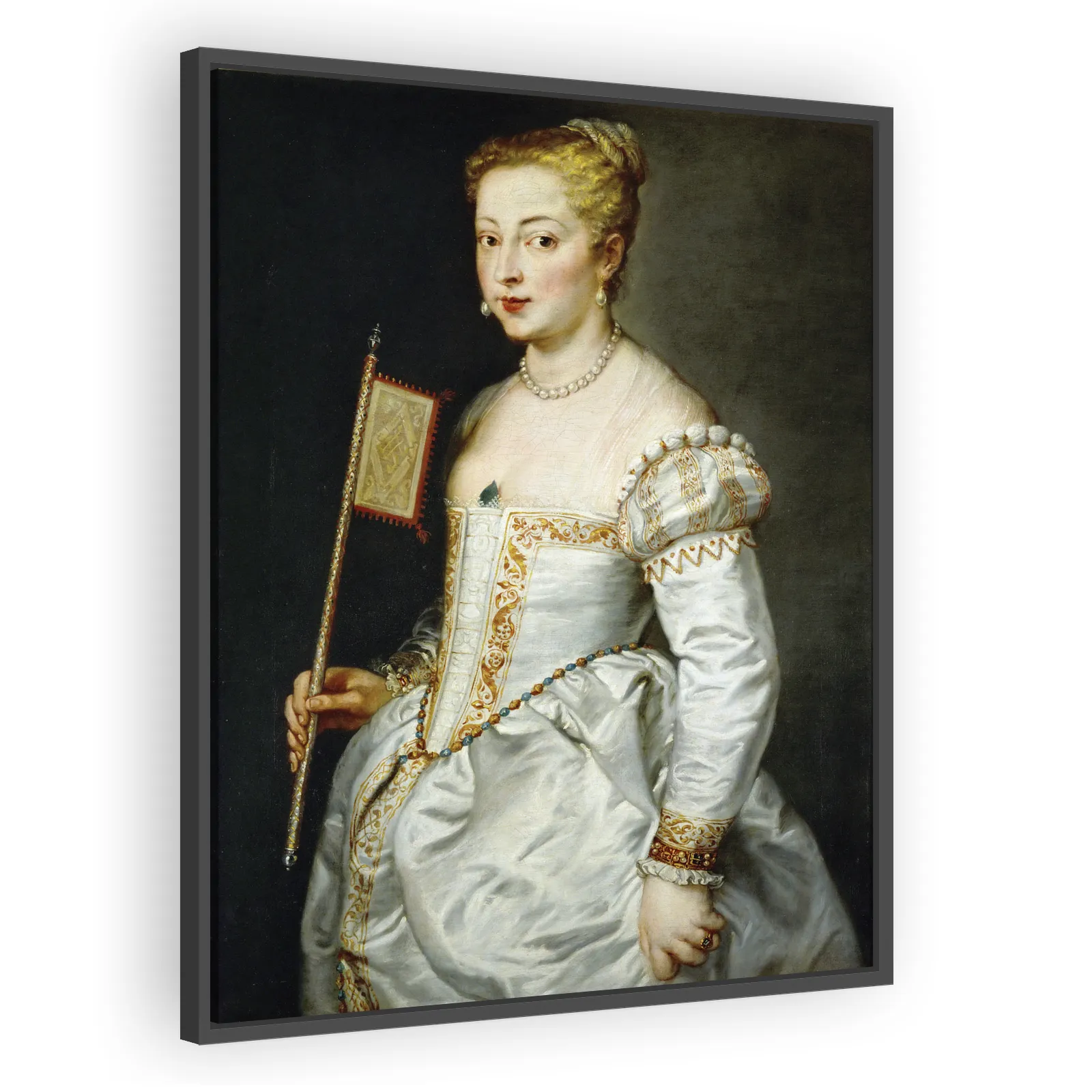 A luminous 1612 portrait by Peter Paul Rubens, depicting an elegant young woman holding a fan. Rich Baroque color, painterly brushwork, and refined likeness make this work a compelling example of Rube...