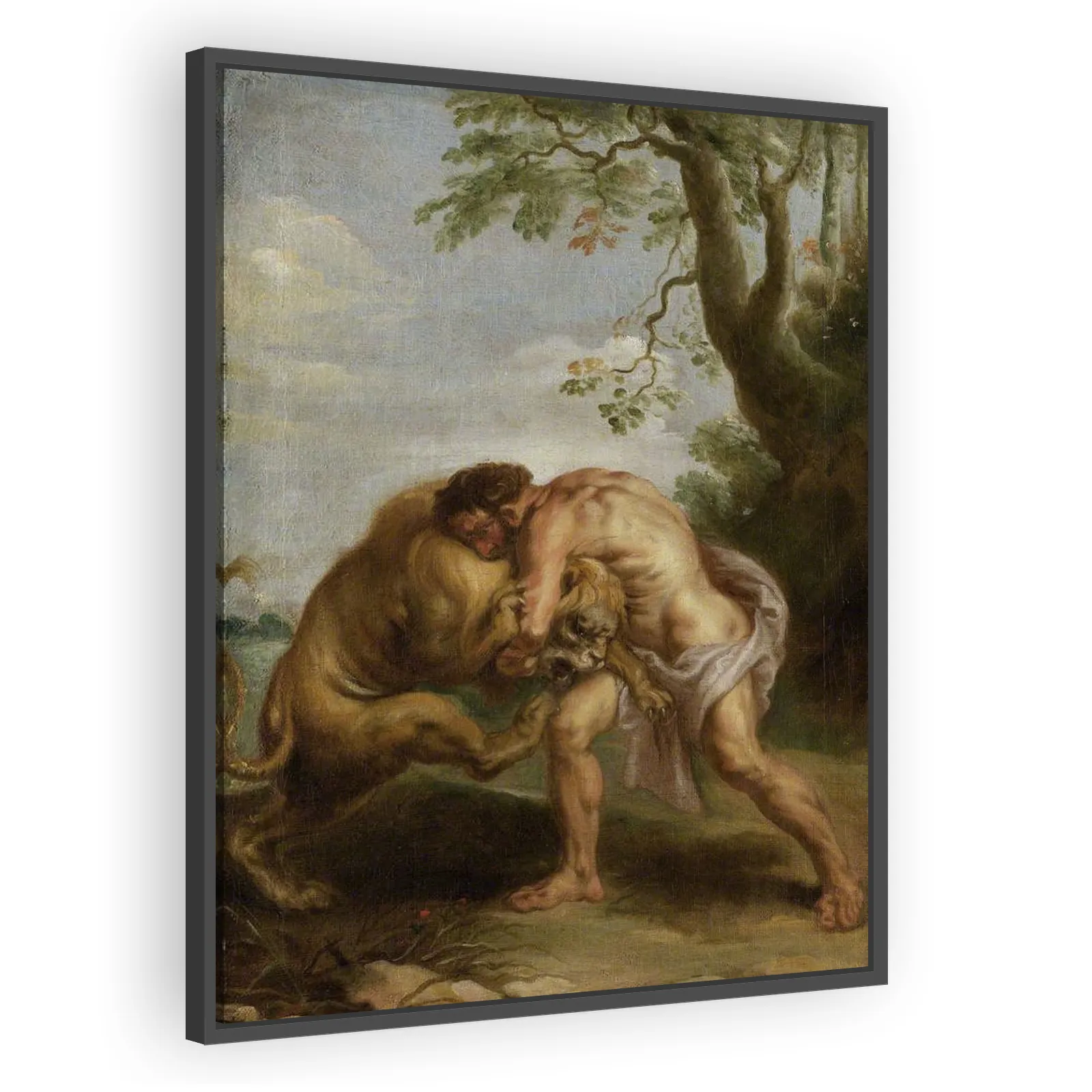 A dramatic Baroque depiction by Peter Paul Rubens of Hercules wrestling the invulnerable Nemean Lion. Rich in muscular anatomy, dynamic movement, and painterly color, the work exemplifies Rubens’s the...