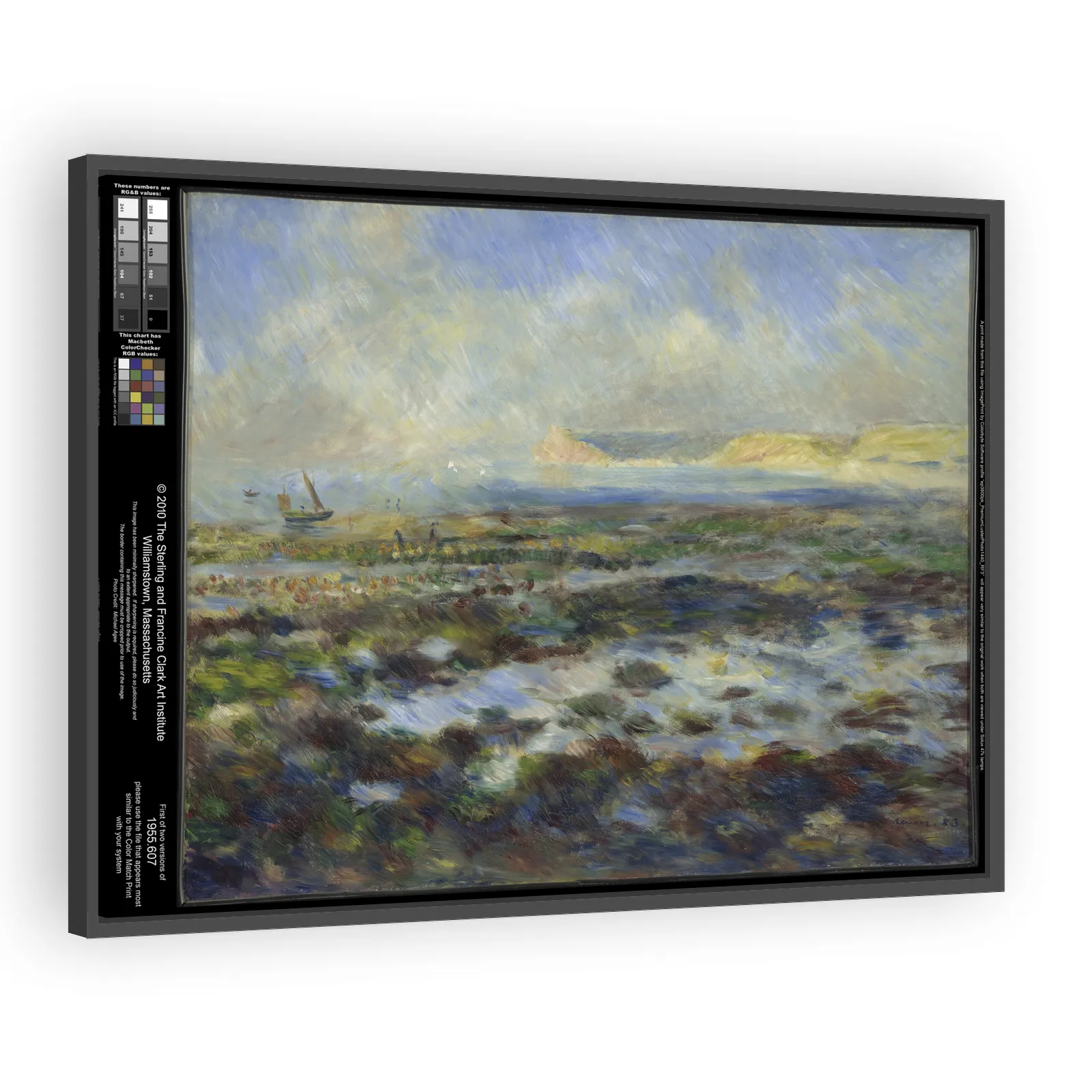 A luminous Impressionist seascape by Pierre-Auguste Renoir (1883), Low Tide, Yport captures sunlit shorelines and leisurely figures with lively brushwork and a warm palette—an inviting study of light,...