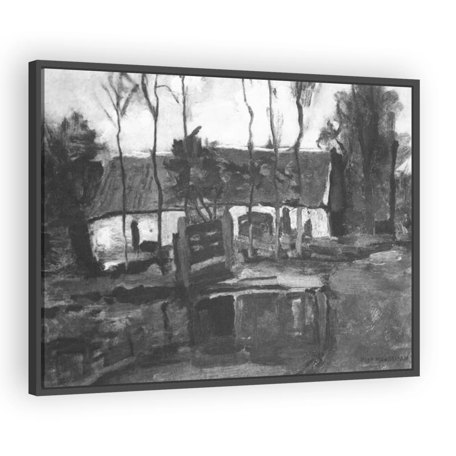 An evocative 1905 work by Piet Mondrian that captures a rural façade with refined tonal harmony. This early landscape reveals Mondrian’s move from representational naturalism toward structural simplif...