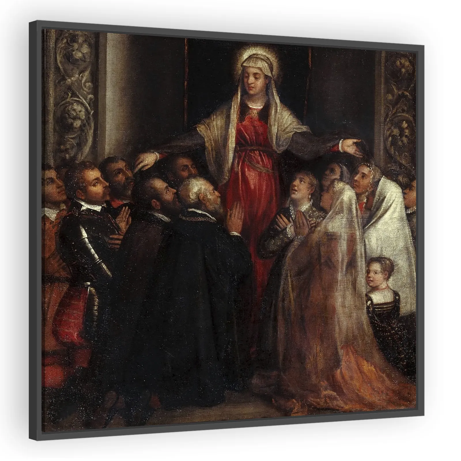 A late-16th-century interpretation of the Virgin of Mercy by Titian (1573). Rich Venetian color, dramatic light, and a compassionate Marian gesture make this work a powerful devotional image and a str...