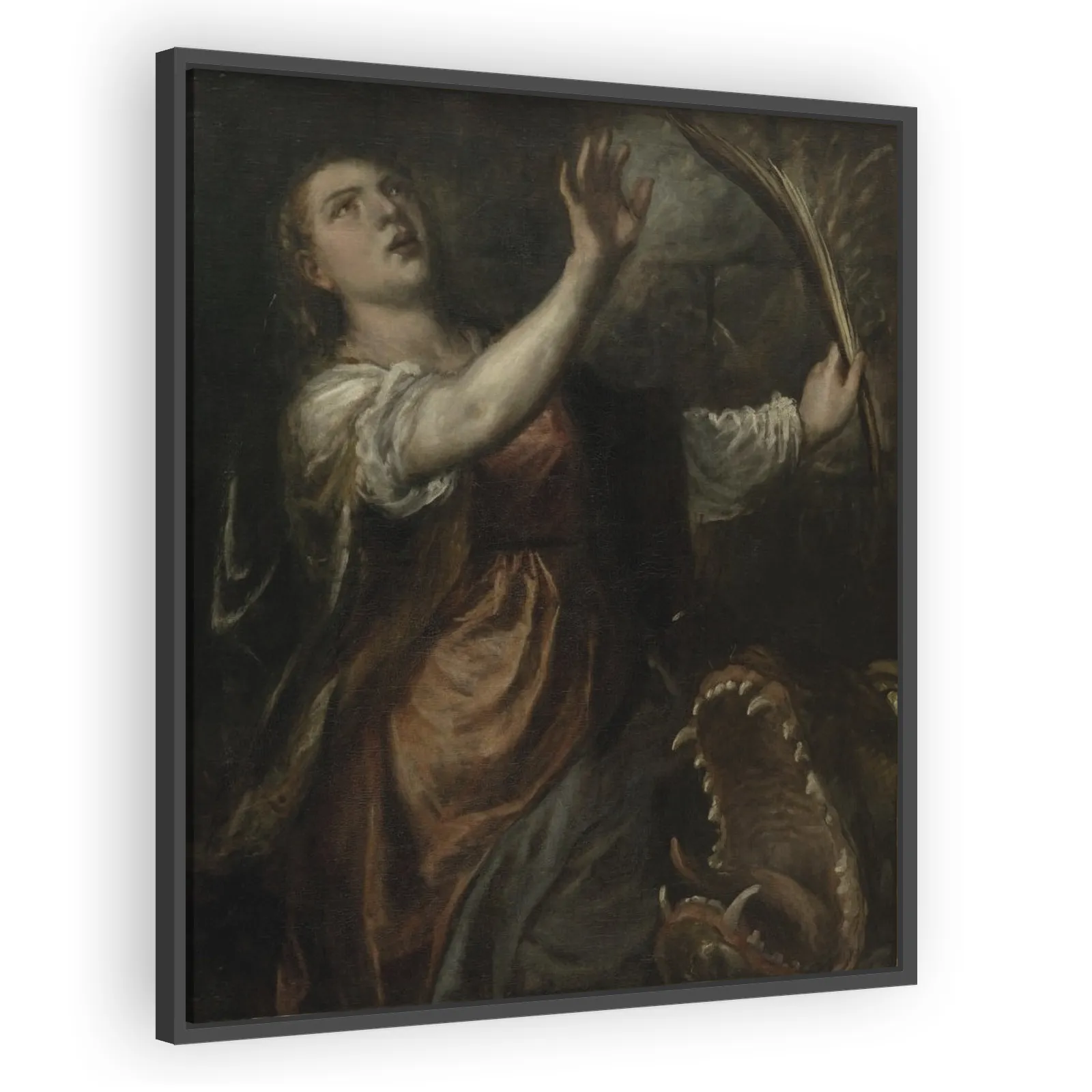 Titian’s Saint Margaret and the Dragon (1570) fuses late Renaissance drama with poetic color. A striking devotional image, it showcases Titian’s mature palette, dynamic composition, and theatrical lig...