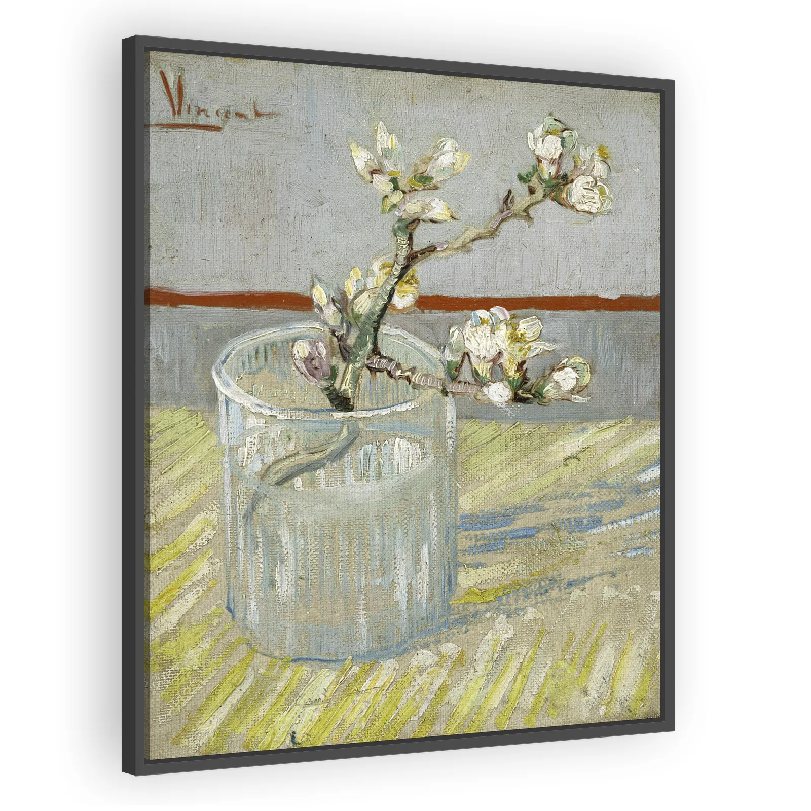 A luminous still life by Vincent van Gogh (1888) capturing a delicate almond branch in a glass. Bold brushwork, vivid color, and intimate composition convey renewal and quiet intensity—ideal for colle...