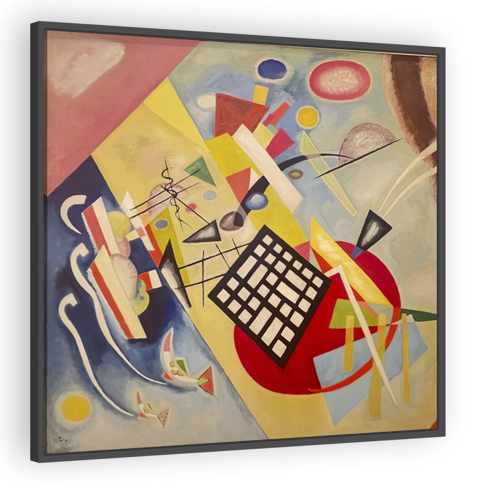 Black Grid (1922) by Wassily Kandinsky captures his move toward geometric abstraction during the Bauhaus era. Stark lines and measured color blocks create a rhythmic, intellectual composition appealin...